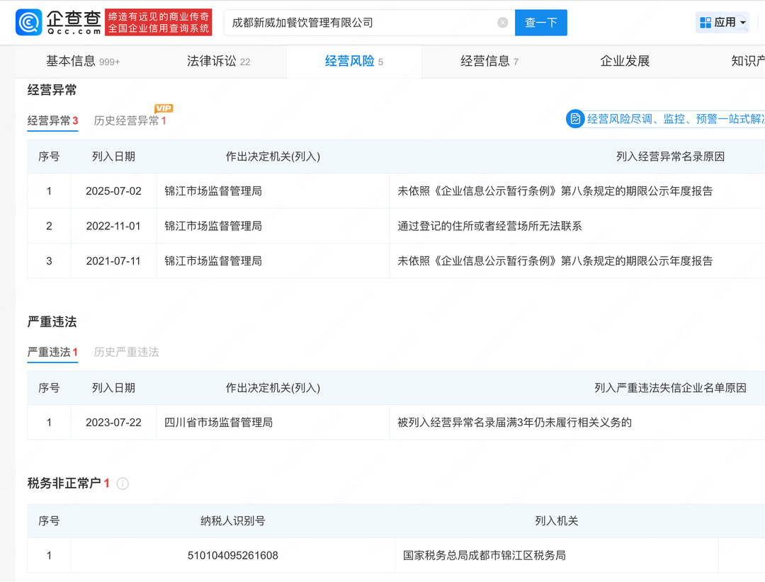 那英老公孟桐(孟彤)名下关联12家企业,其中北京隆泰天润餐饮娱乐有限公司、成都新威加餐饮管理有限公司已被限制高消费,后者已多次被列入经营异常名录,并因“被列入经营异常名录届满3年仍未履行相关义务的”于2023年被列为严重违法失信企业名单。值得注意的是,孟桐与那英关联的3家企业均已注销。
